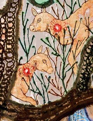 小林は、動植物が輝く美しい世界を、いつかは消滅して自然に還ってゆく生命を、糸と布によって留めようとしているのかもしれない。